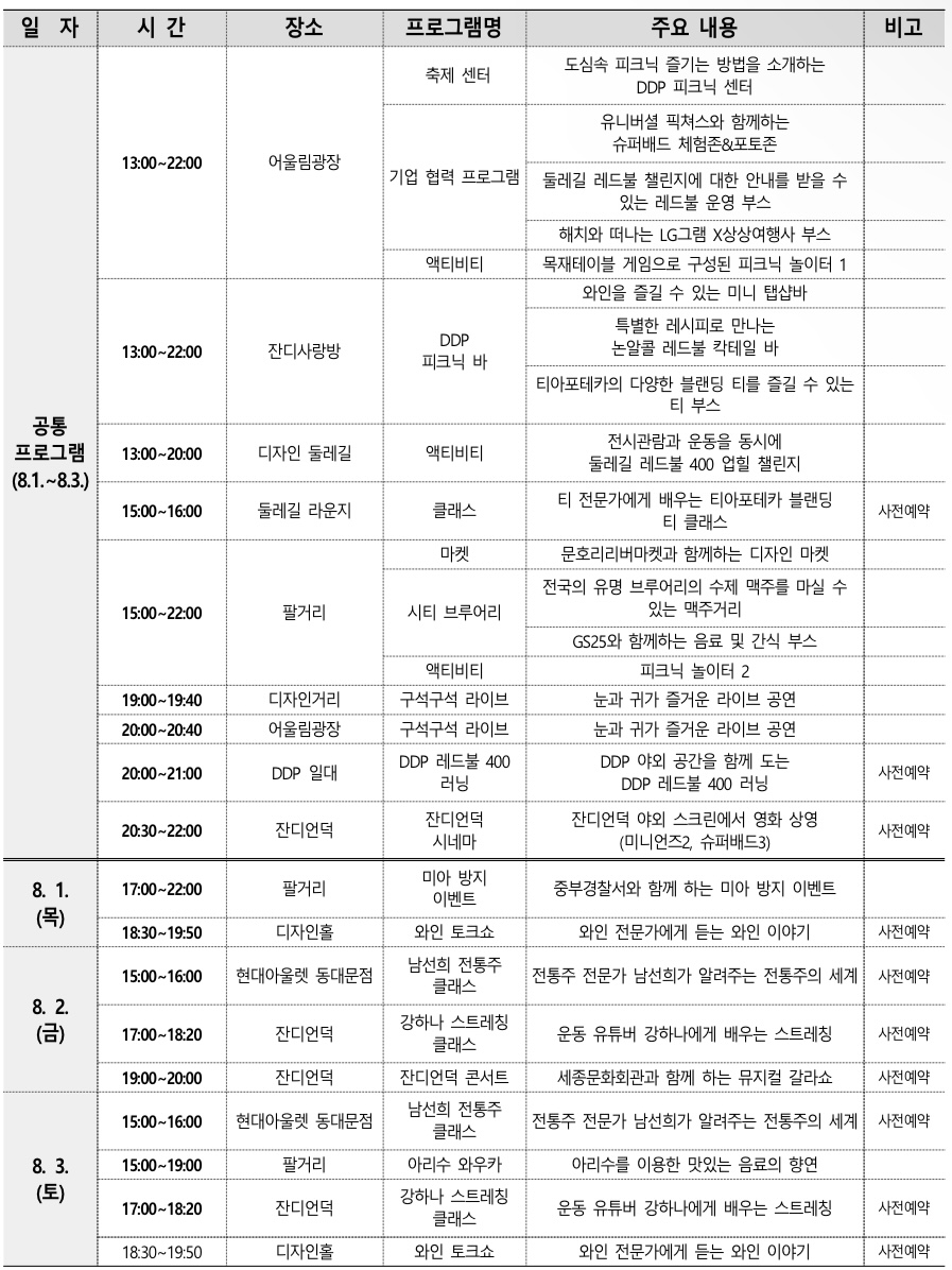 이번 8월초 재미있고 신나는 ddp 축제가 있습니다. 살펴보시고 예약하셔서 즐기시길 바랍니다.