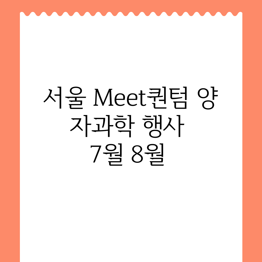 서울 Meet퀀텀 양자과학 행사 7월 8월 사전예약