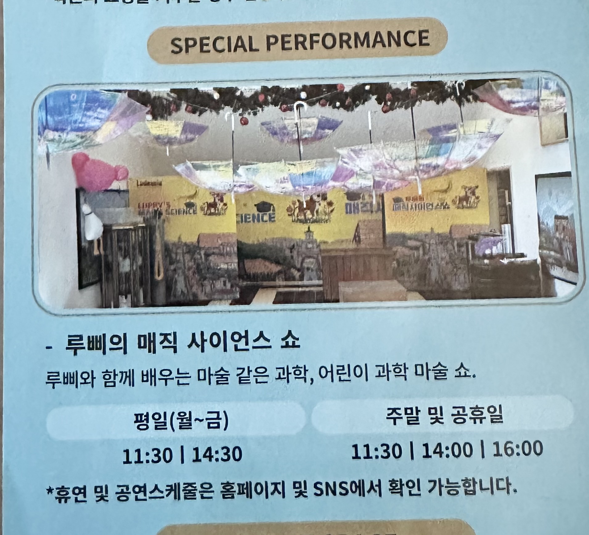 루삐의 매직사이언스 쇼 시간표 장소 관람후기