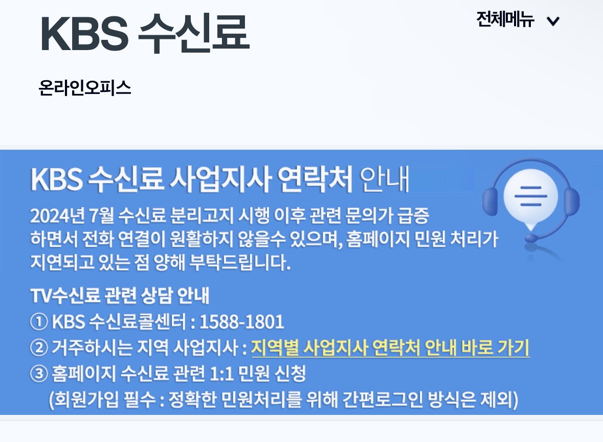 저같이 답답한거 싫어하고 급한 분들을 위해 콜센터 전화번호 안내드립니다. 아무래도 수신료관련 문의가 많아서인지 콜센터 말고도 지역별 지사 연락처 안내문도 있네요.
