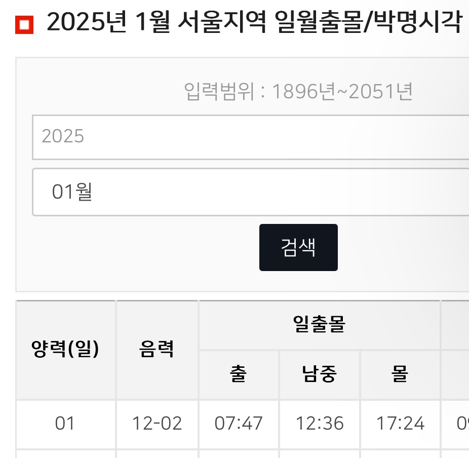 서울 2025 1월1일 일출시간