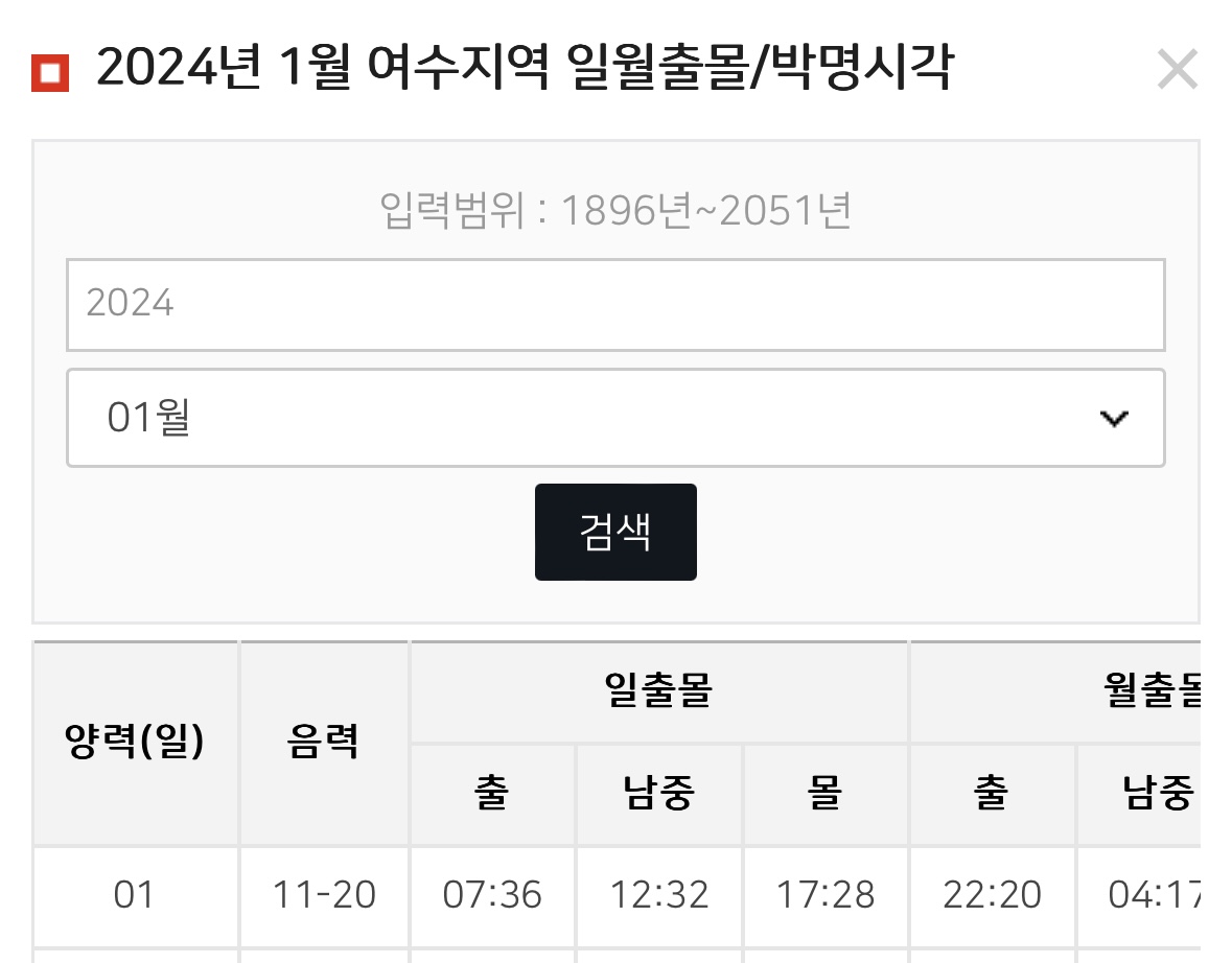 여수 1월1일 새해 일출시간