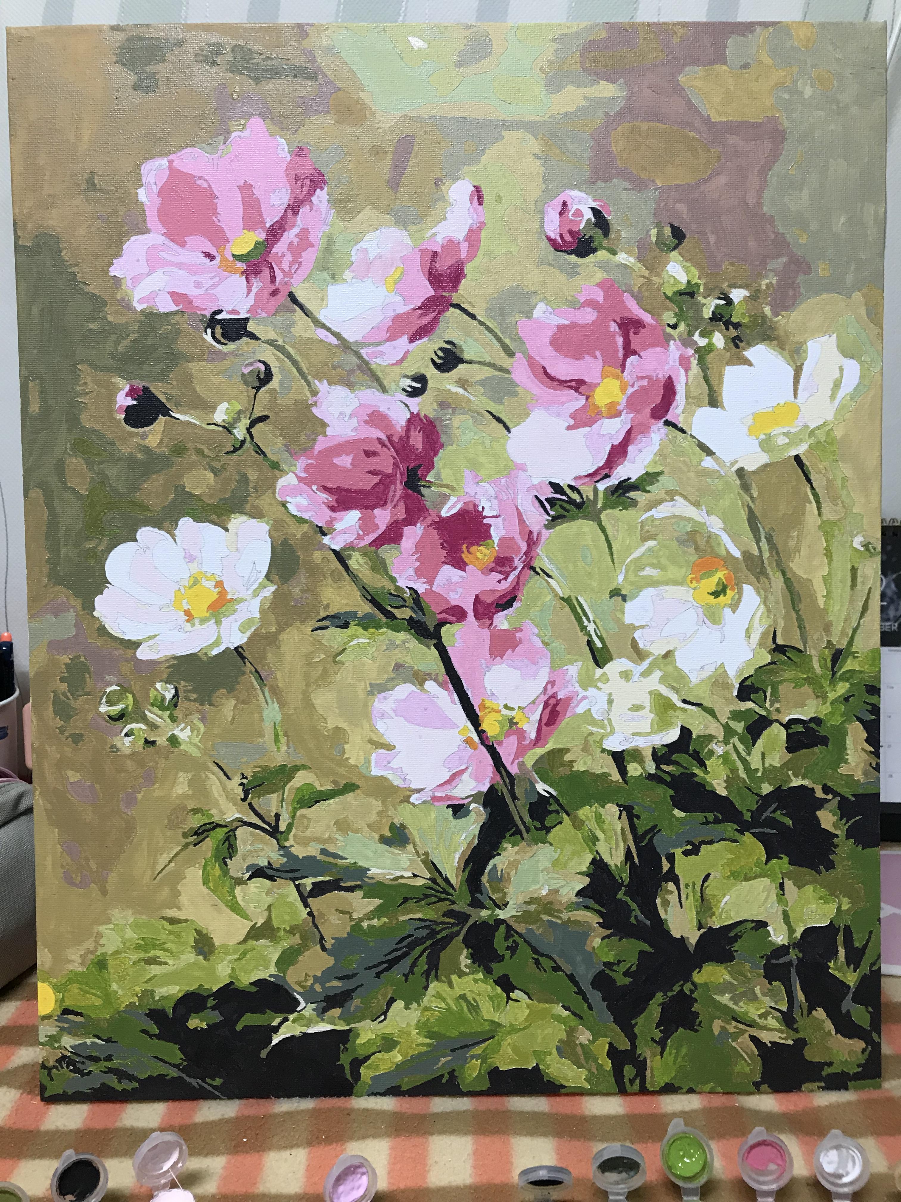대충 색칠하는건 쉽지만 좁고 세밀한 부분과 숫자, 밑그림을 안보이게 덧칠하는게 까다로웠습니다. 보통 일주일 넘게 걸렸던것 같은데 하다보면 눈이 침침해서 오래 붙잡고 있기는 힘듭니다. 그래도 한번 시작하면 두어시간은 몰입이 됐습니다. 드라마 틀어놓고 하면 마음 평온해지는데는 제격입니다.