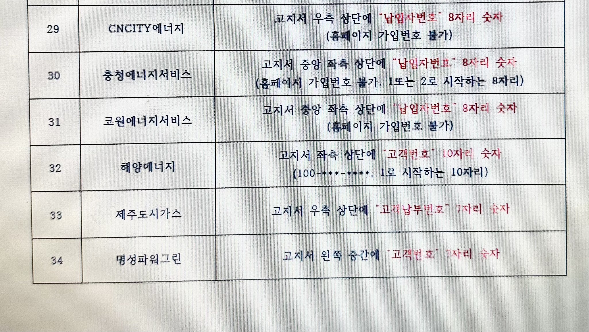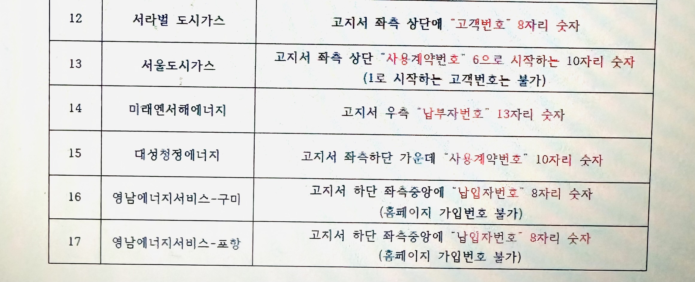 ④ 도시가스 회사 이름, 고객식별번호를 잘못 쓴 경우