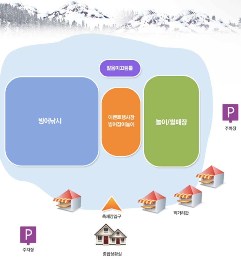 낚시,시식,포토존,전통놀이체험(제기,팽이,연날리기등),썰매등