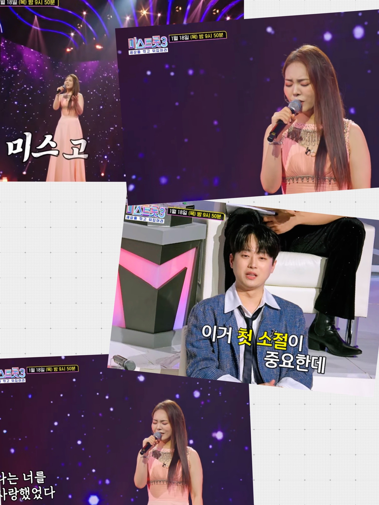 2024년 1월 18일 목요일에 방영된 미스트롯3 5회 내용을 요약해보겠습니다. 특별한 자신만의 스타일로 노래를 부르면서도, 경쟁관계의 긴장감도 한 수푼 더했습니다.