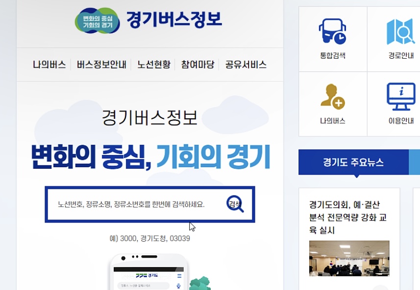 경기버스정보시스템 홈페이지 가기
