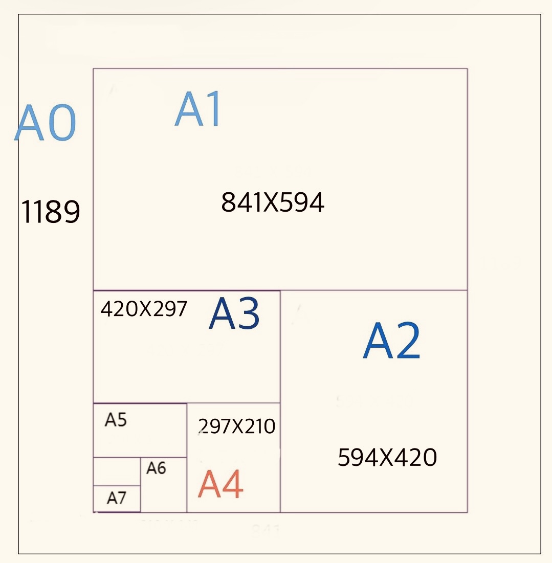맨 처음 A0의 사이즈의 면적은 1m2입니다. 이를 기준으로 해서 1:1.414 비율이 되는 규격이 나오게 된것입니다.
