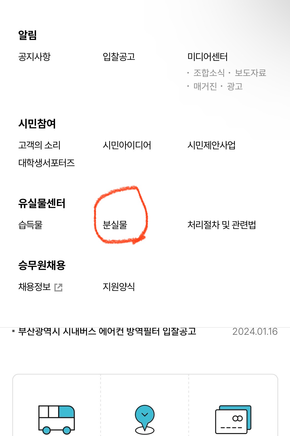 부산 버스 분실물센터 바로가기 분실물찾기