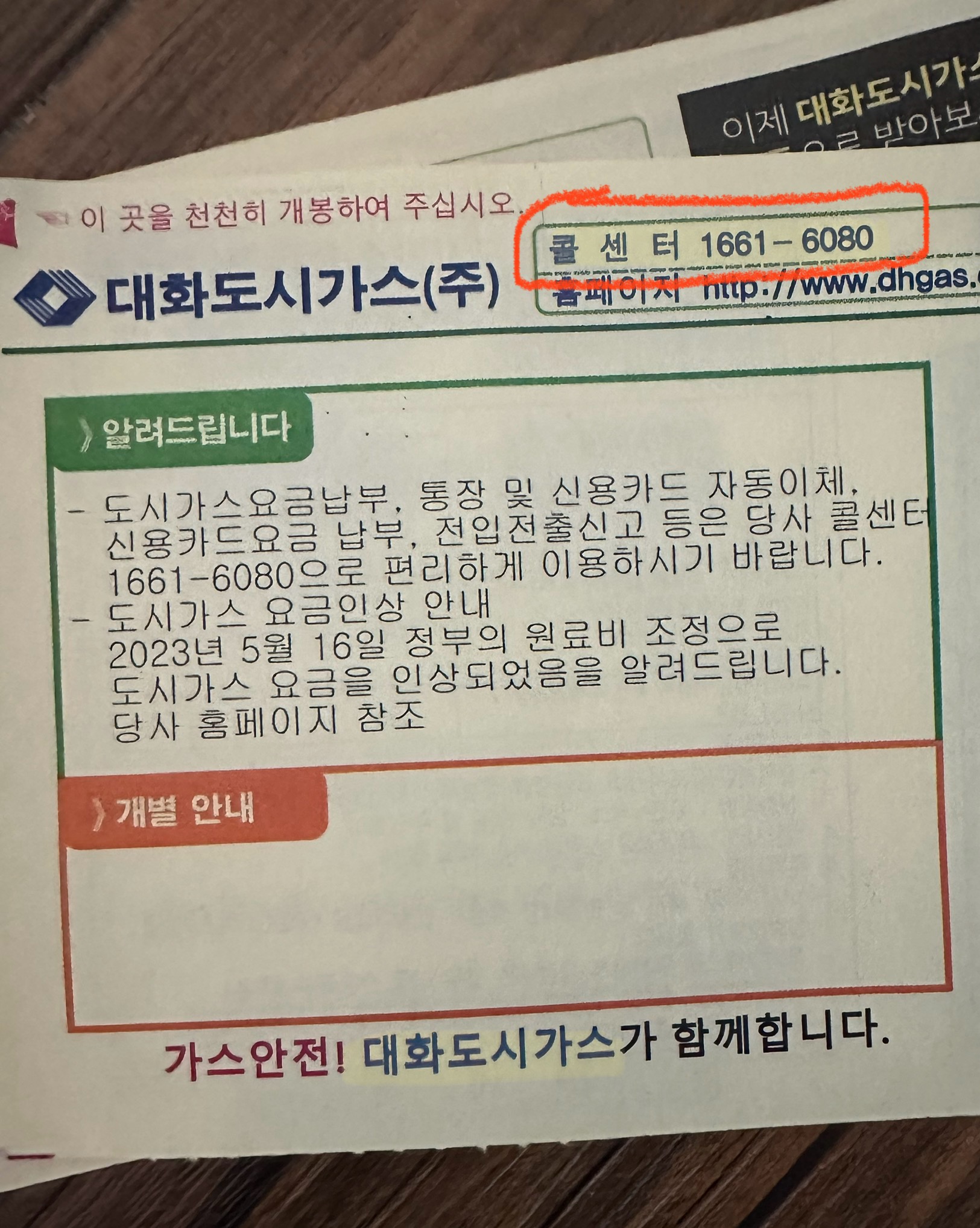 대화도시가스 고객센터 전화번호