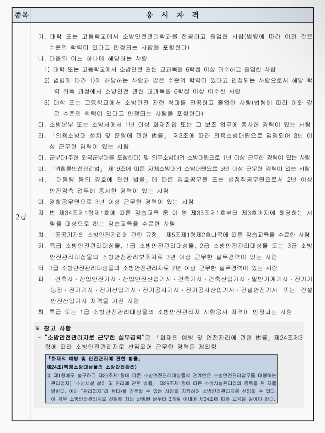 소방안전관리자 시험 응시자격