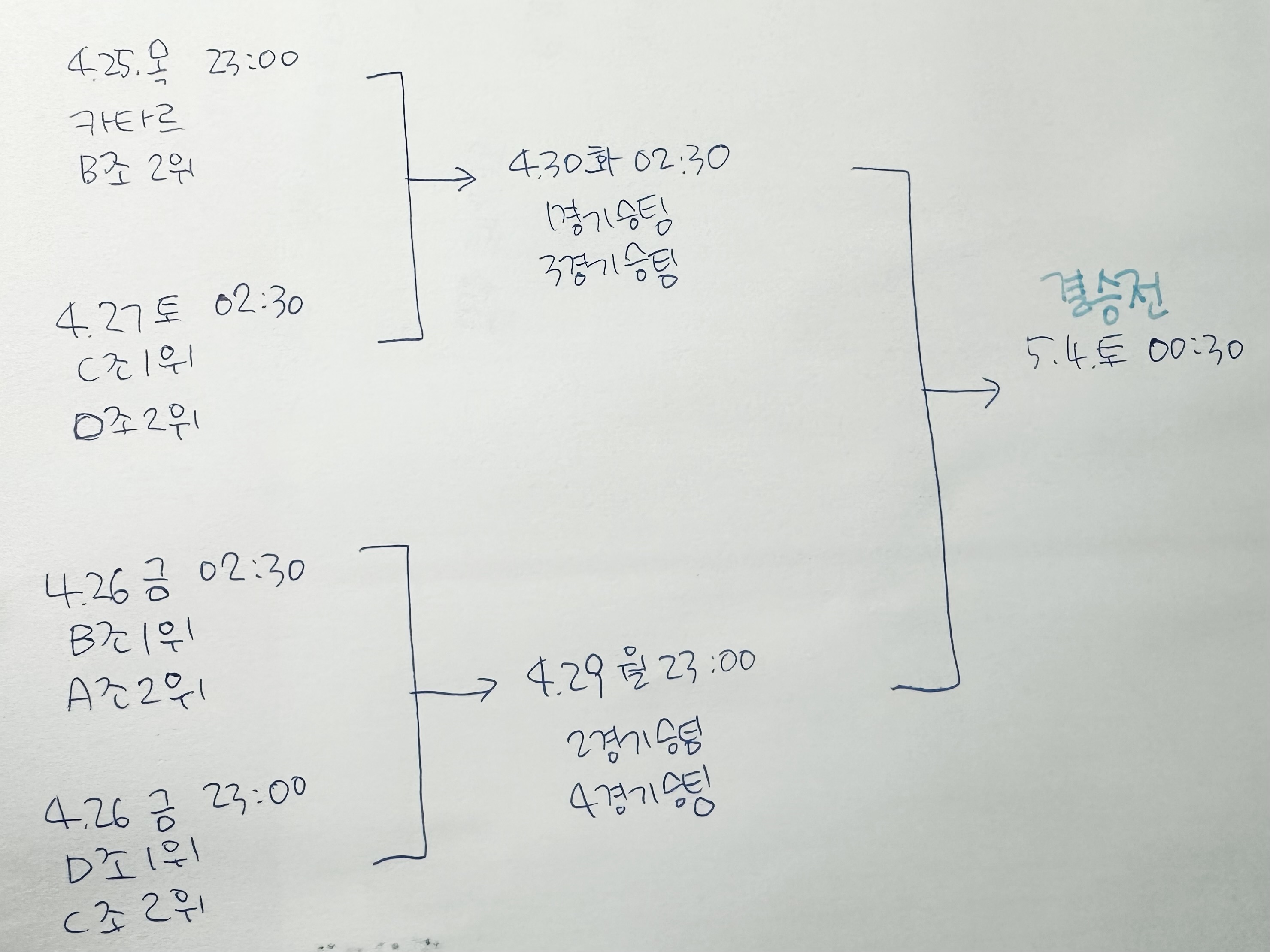 월드컵때문에 익숙해서 16강 대진표를 찾으시지만 팀 수가 적어서 사실 8강 대진표입니다. 일정은 다음과 같습니다.