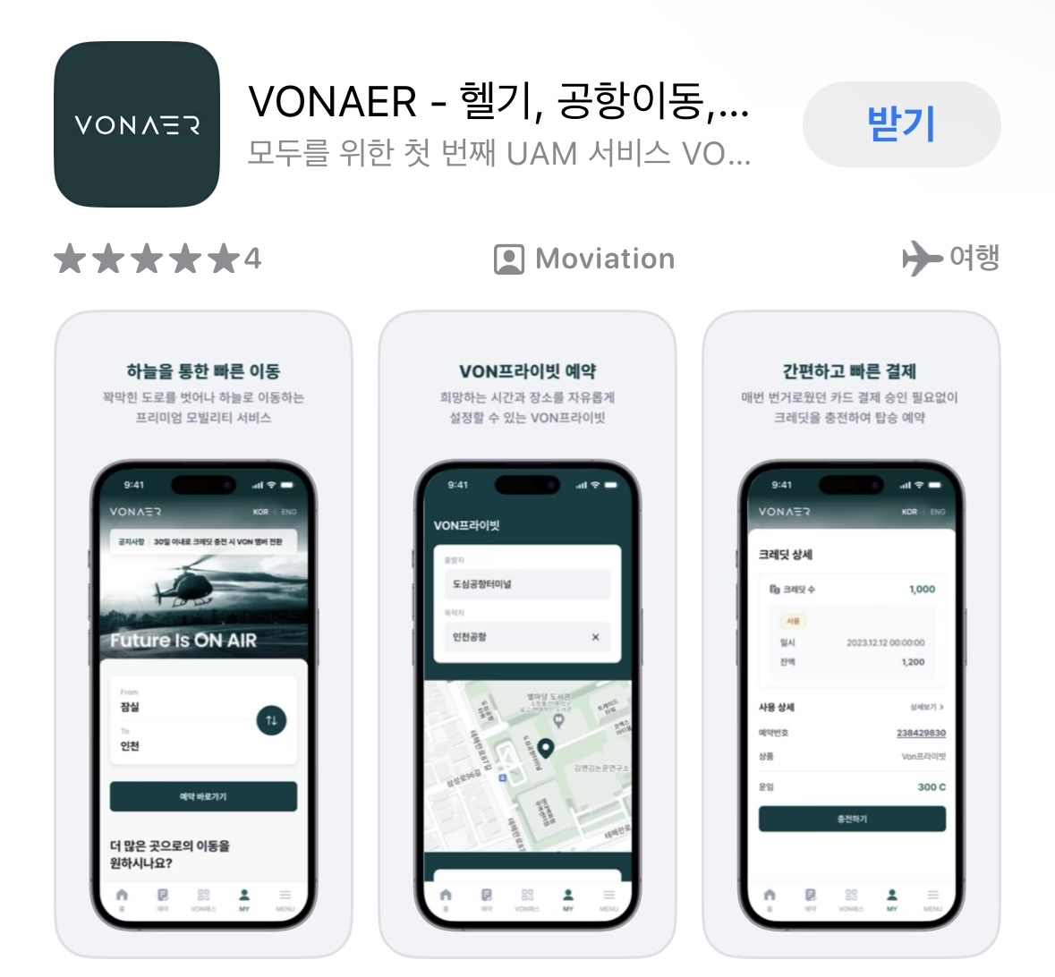 스타트업 모비에이션이 하는 헬기 서비스입니다. 어플은 본에어 라고 검색하시면 됩니다. 저도 다운받아 가입은 해봤는데요.