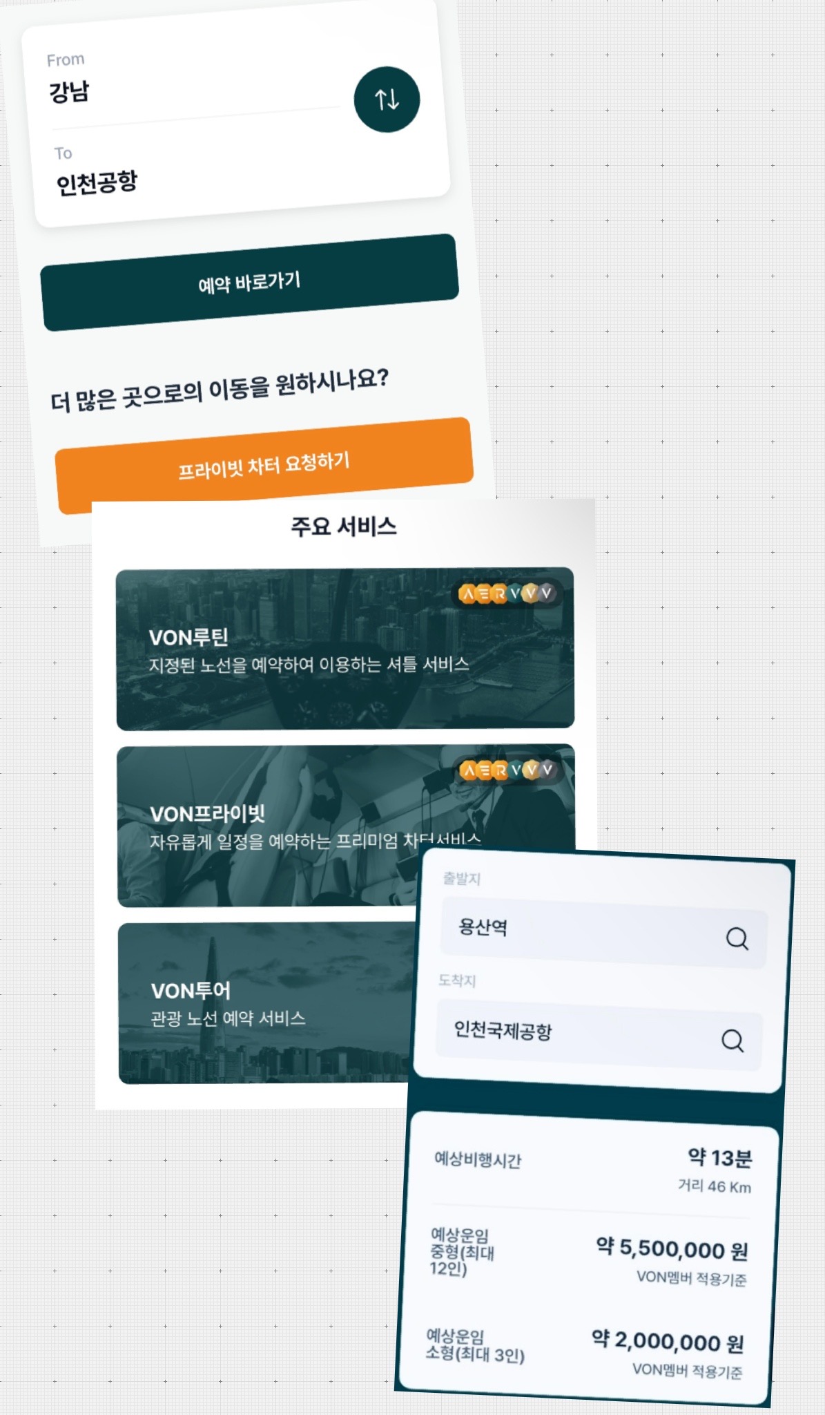 강남 <-> 인천공항 기준 1인 편도 440,000원 2인 88만원, 단독 비행 편도 1,320,000원