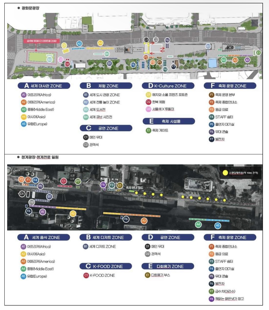 한국 전통취타대,친선우호도시의 공연단,시민 등이 참여하는 개막 축하 퍼레이드가 광화문광장~세종대로 일부 구간까지 진행됩니다. 이후에는 광화문광장에서 프랑스 국적 소리꾼 마포 로르(LaureMAFO)의 판소리 축하공연이 있습니다.