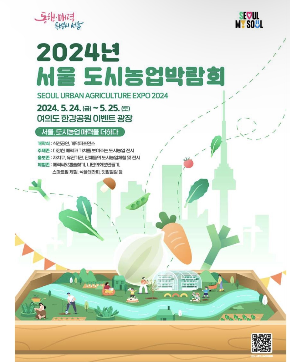 2024년 서울도시농업박람회는 녹색이 가득한 텃밭 속에서 일상에 치유와 쉼이 있는 도시농업의 매력을 서울에 더하여 씨앗부터 먹거리 나아가 미래의 농업까지 도시농업의 다양한 매력과 가치