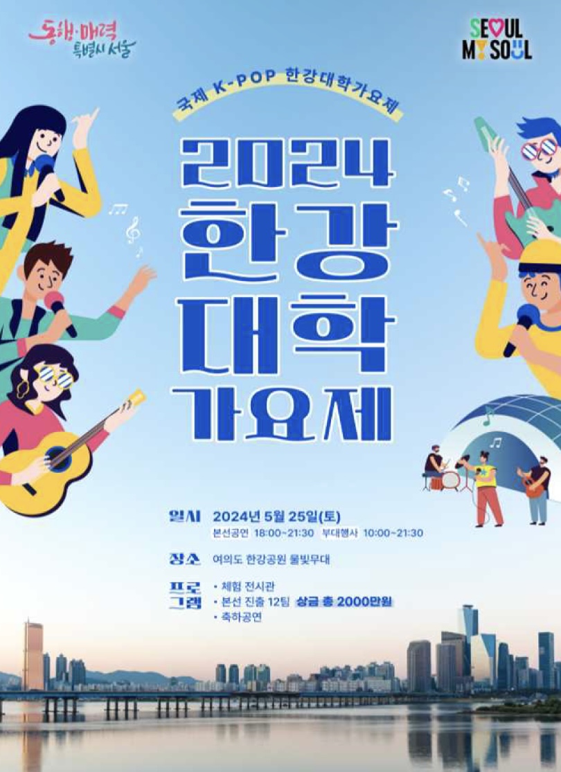 요즘 한여름도 아니고 바람도 간간히 부니 즐길거리도 많고 돌아다니기가 참 좋습니다. 내일모레 한강대학가요제를 함께하면 어떨까요.