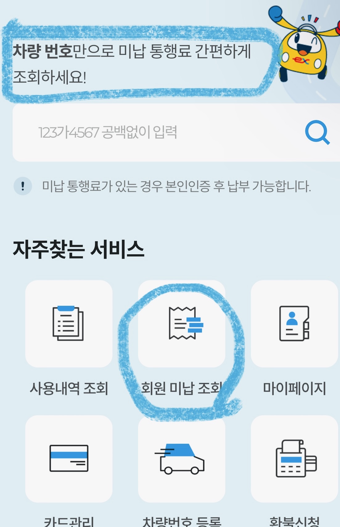 고속도로 통행료 미납조회 영수증 발급 재발급 방법