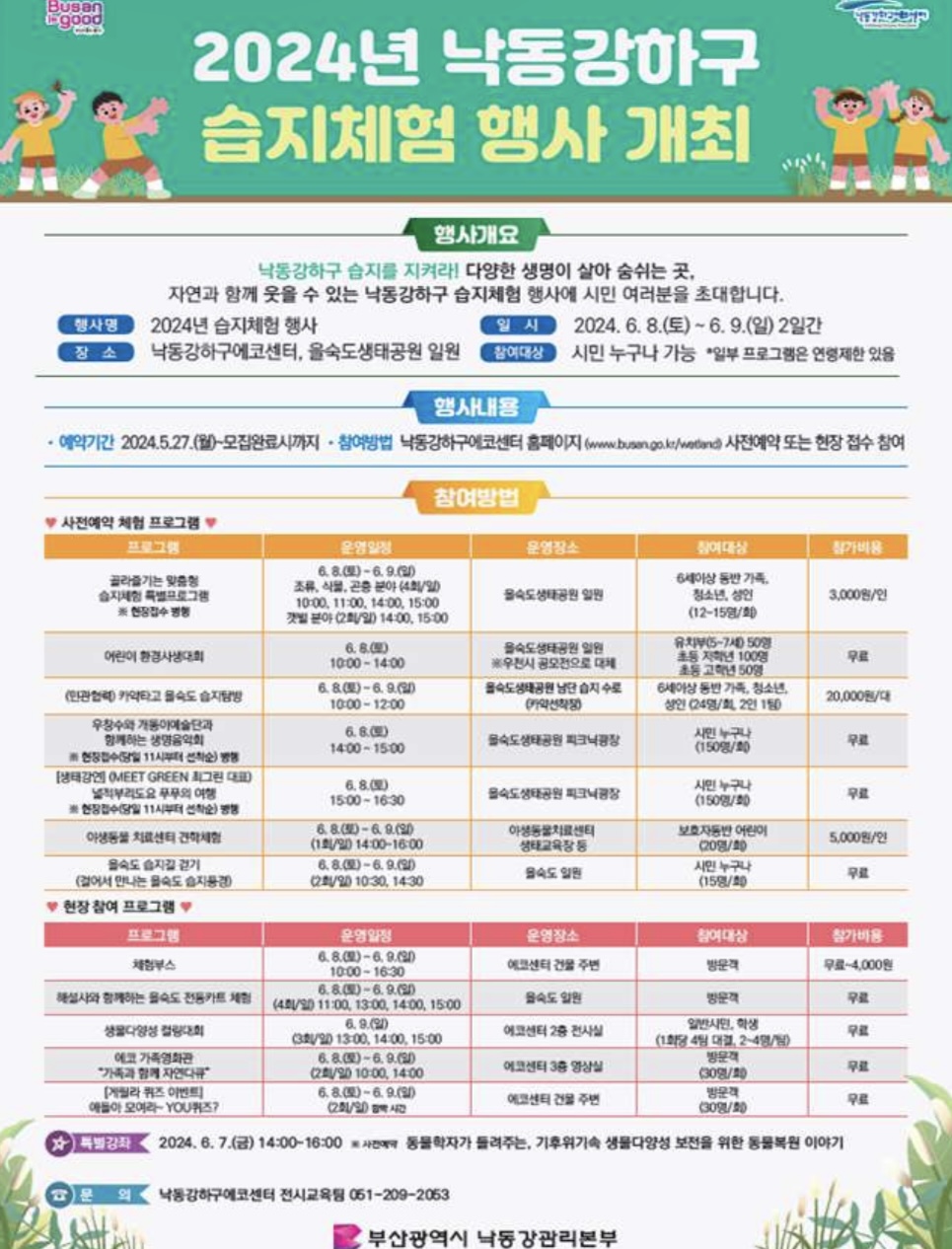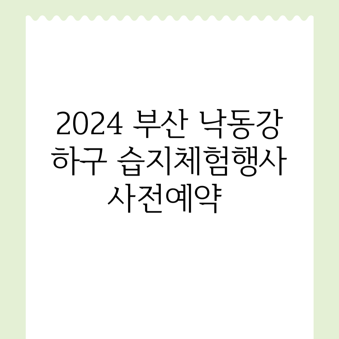 부산에서 스페셜한 습지체험행사가 다음달 초에 열립니다. 부산은 재밌는 도시같아요. 보고 즐길거리가 찾을수록 매우 많습니다.