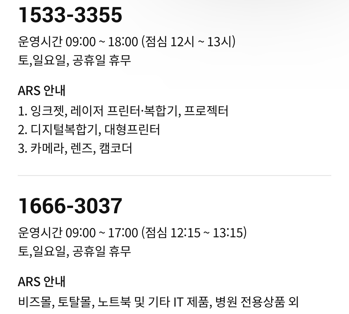 어떤 제품의 서비스가 필요하신지 확인을 먼저 해주시면 되겠습니다. 전화를 하시거나 홈페이지에서 1:1문의를 남길 수도 있습니다.