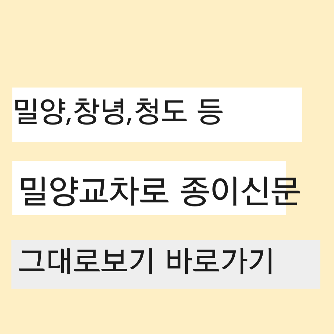 밀양 교차로 신문은 밀양, 창녕,청도등의 지역의 소식을 보실수 있어요. 주2회 월 목에 발행된답니다.메인 화면에 나오는 구인구직은 물론,자동차,우리 지역 소식,부동산 등 여러가지를 만나볼 수 있답니다.