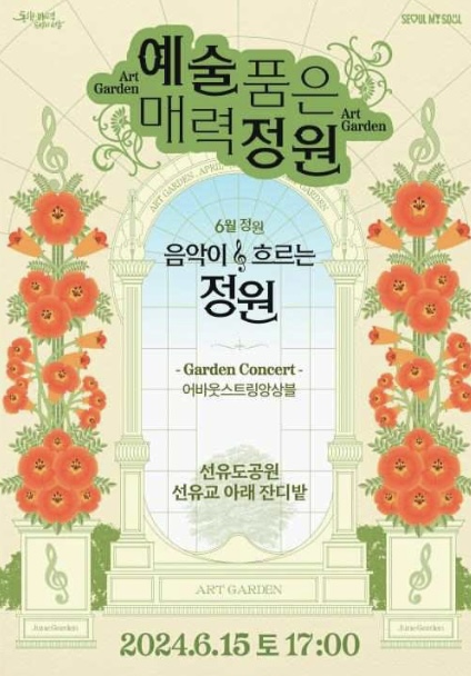 6월 클래식 공연은 어바웃스트링앙상블과 함께 하는데요.바이올린과 비올라, 첼로, 콘트라베이스로 구성된 앙상블은 하이든의 '종달새 1악장', 비발디 '사계' 중 봄1악장, 여름 3악장, 가을 1악 장, 겨울 2악장 등을 연주하고 이외에도 우리에게 친숙한 조쉬 그로 반의 '유 레이즈 미 업'과 영화 '여인의 향기' OST가 연주됩니다.